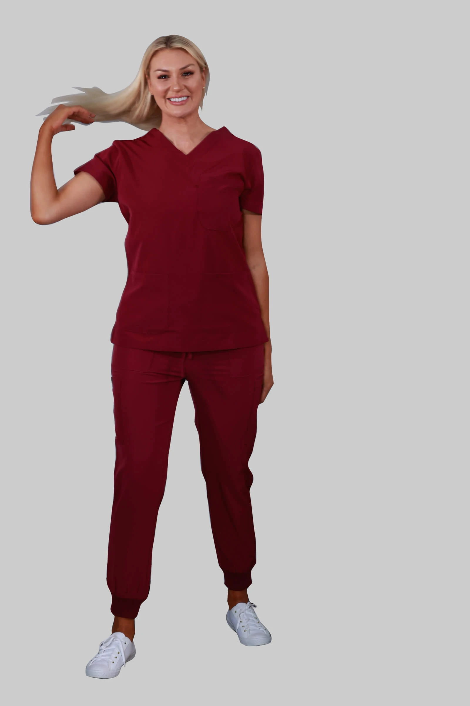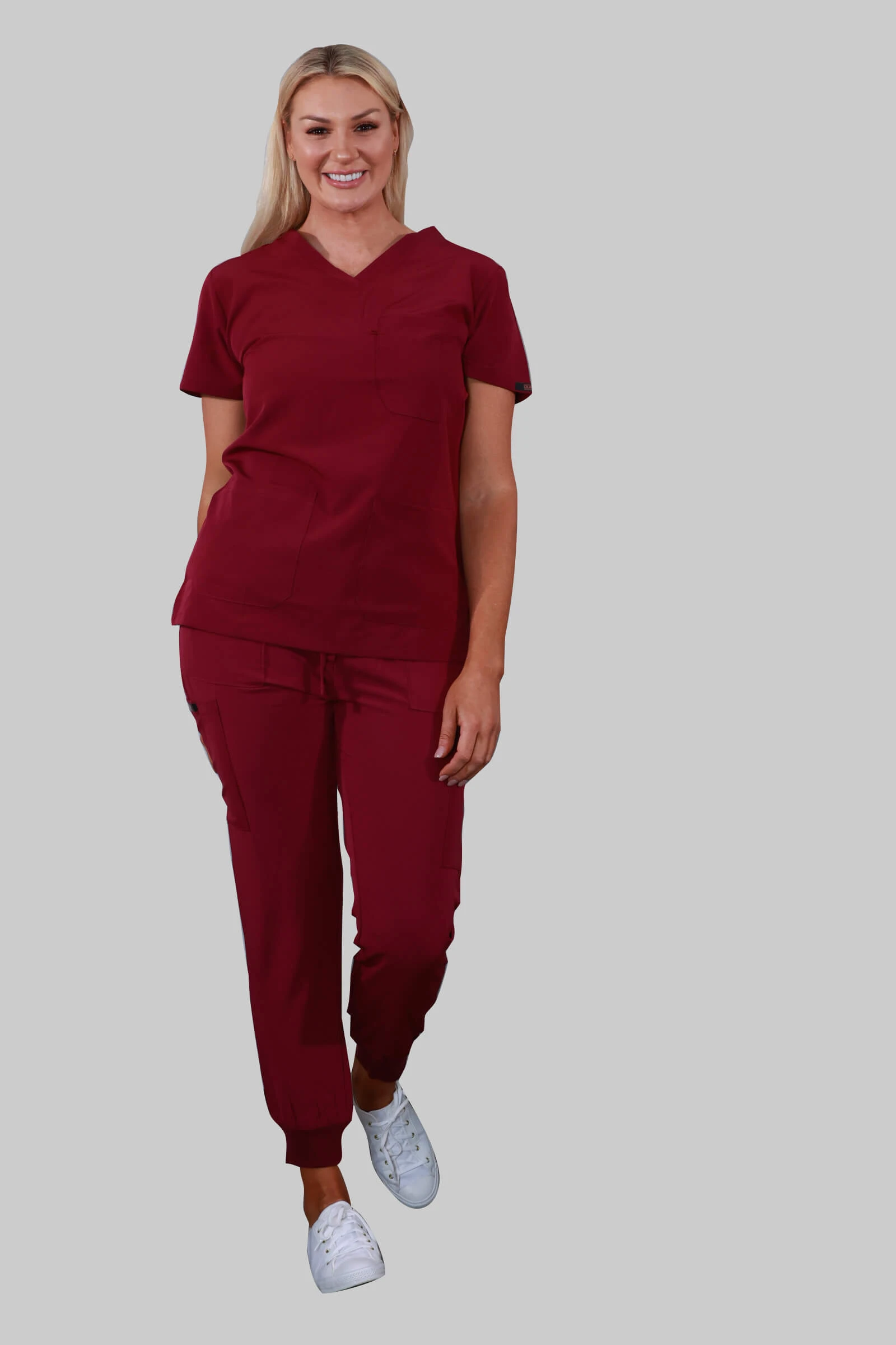 Model Name: Six Pockets jogger scrub pants (Wine)