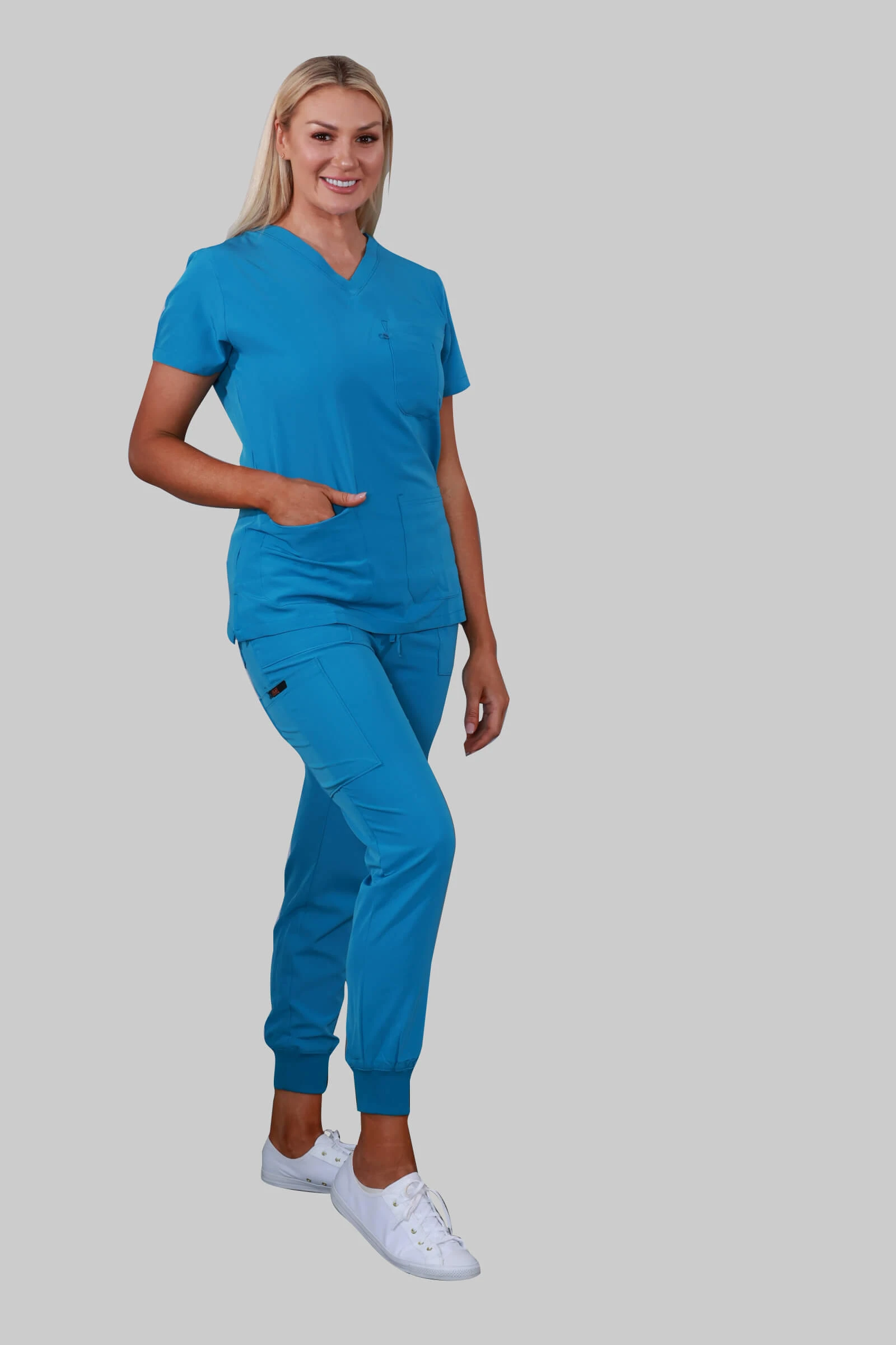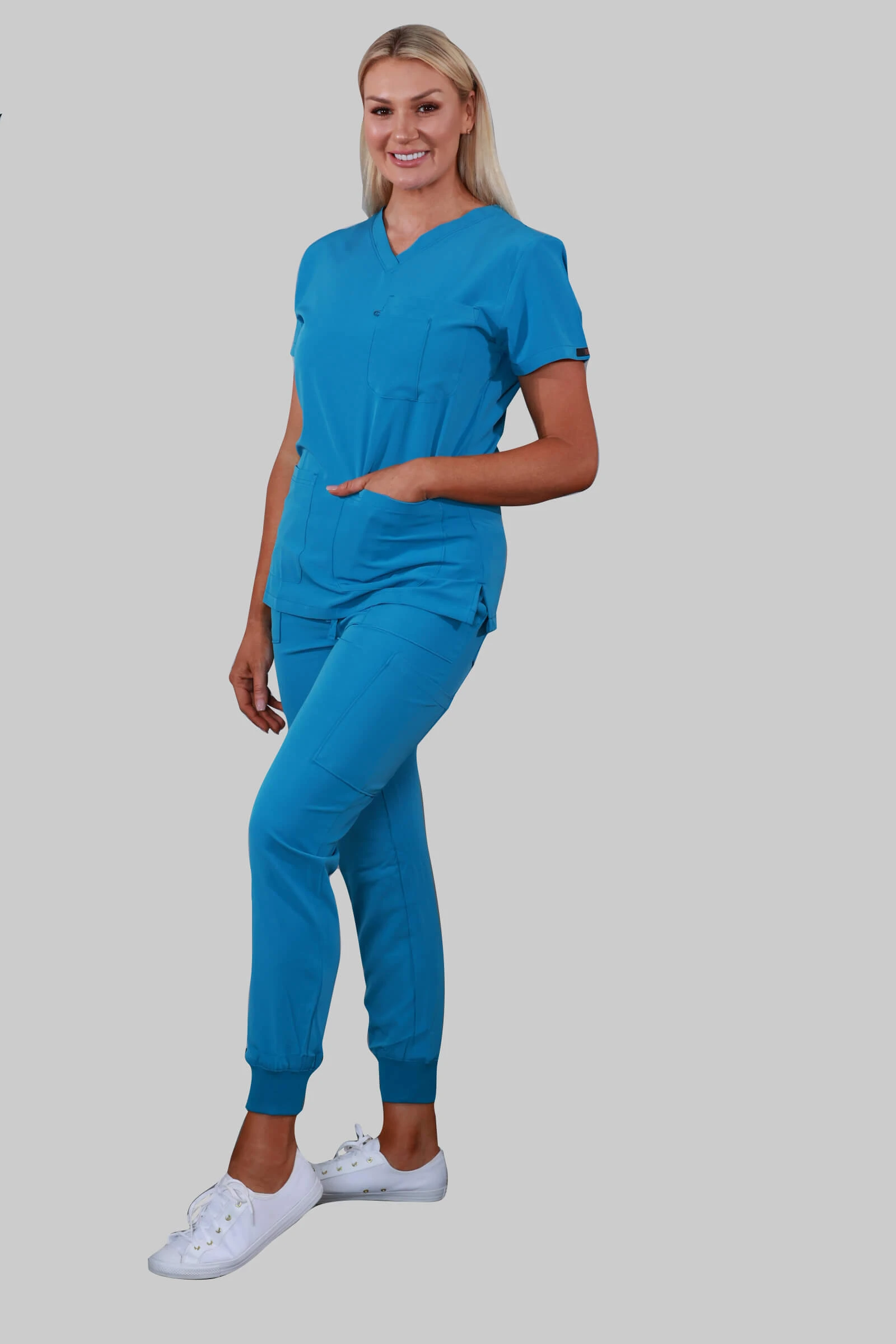Model Name: V-Neck Four Pockets Scrub Top (Teal)
