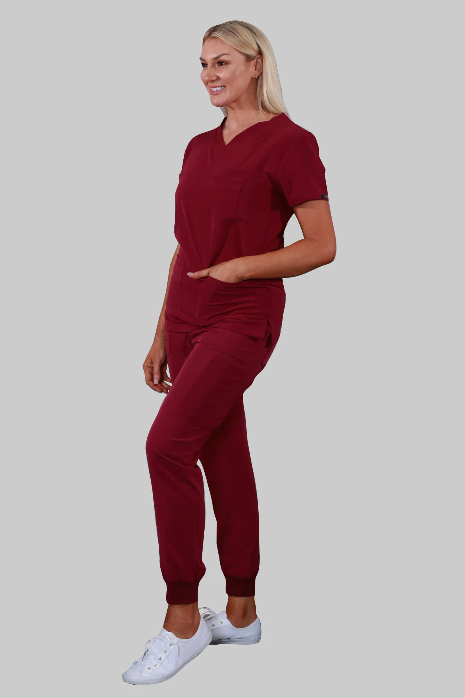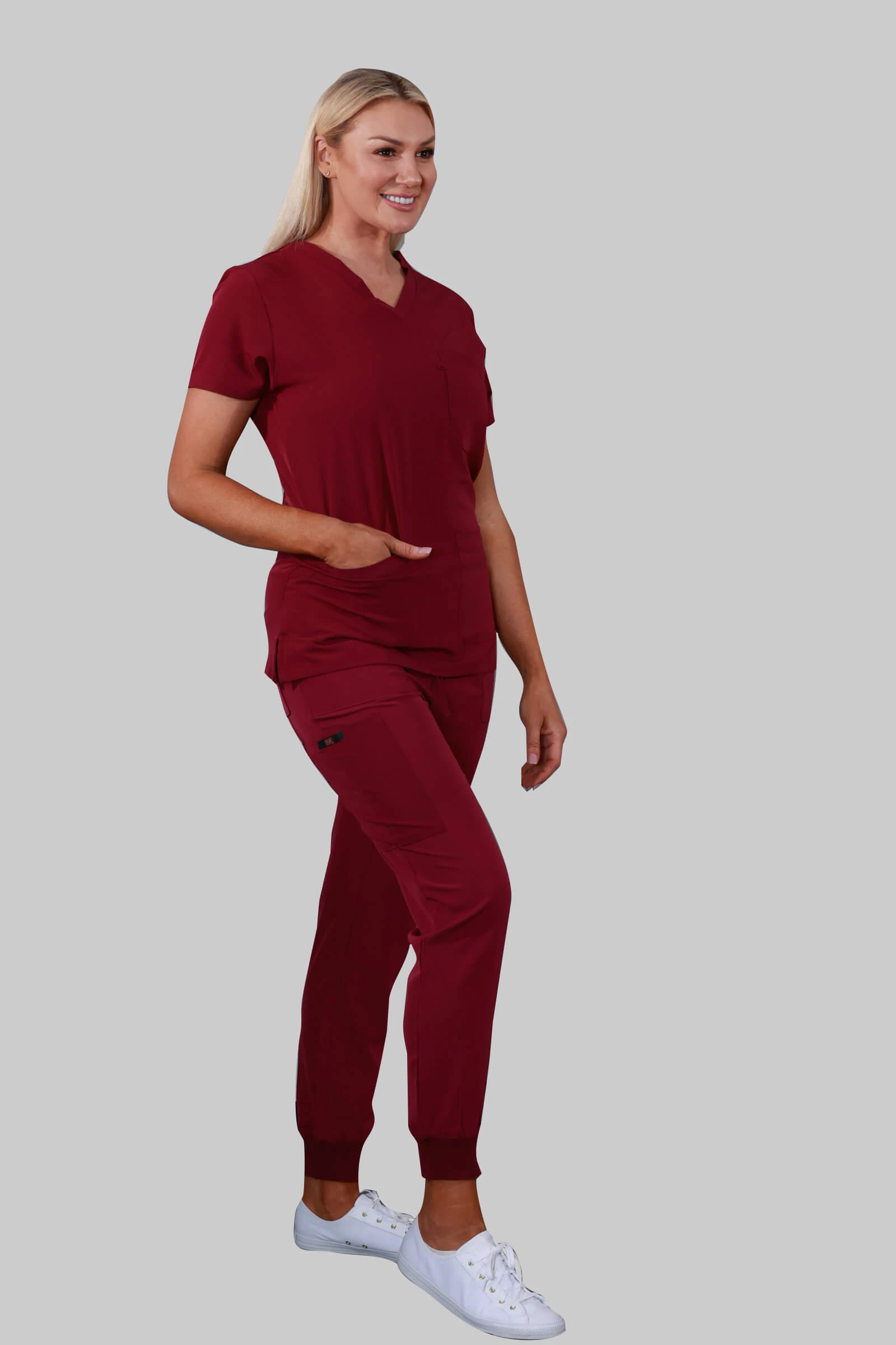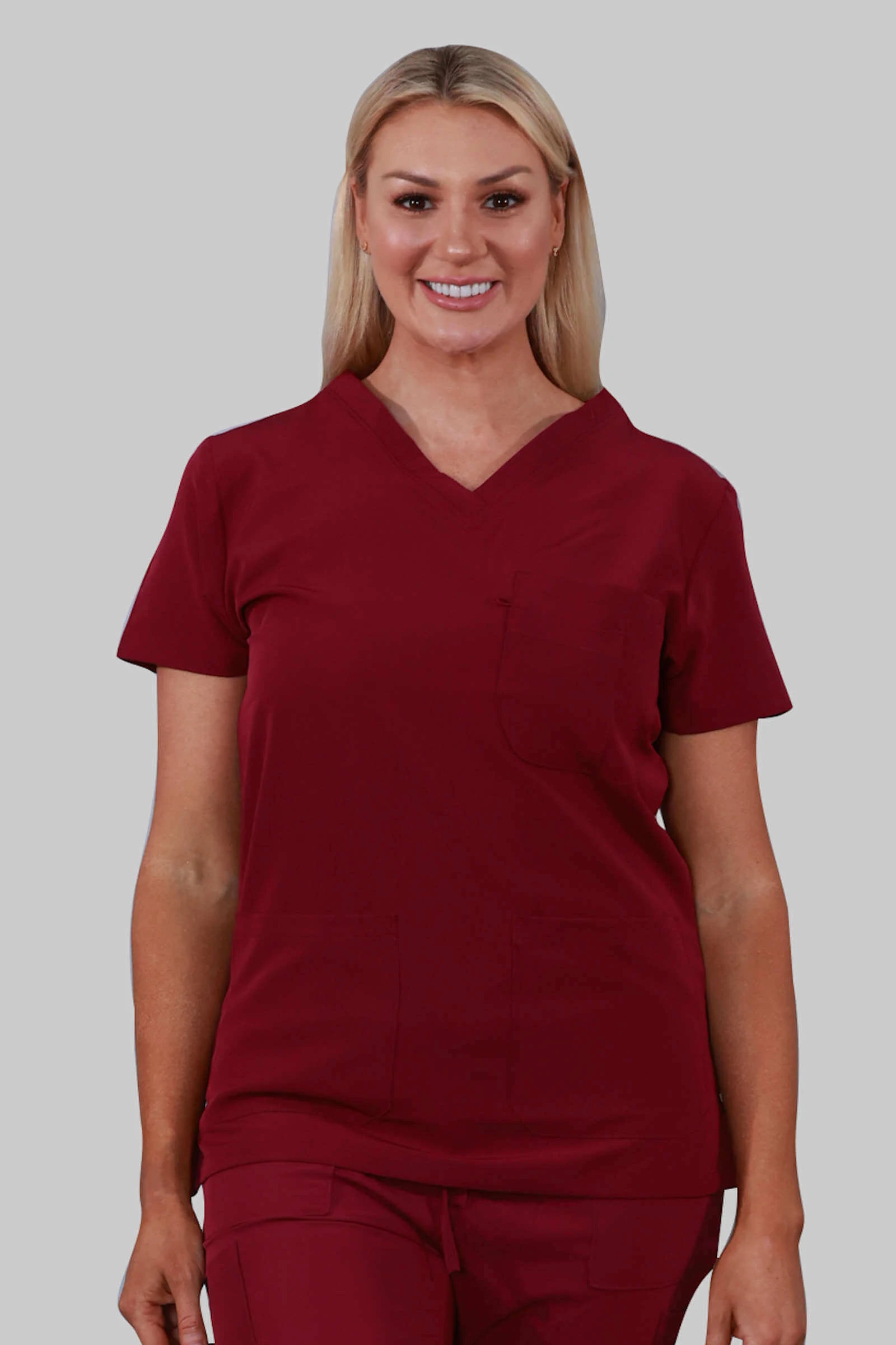 Model Name: V-Neck Four Pockets Scrub Top (Wine)